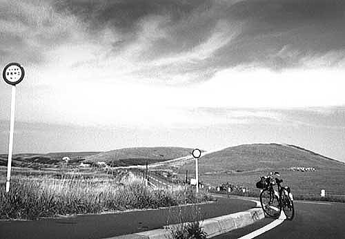 しかしがんばって来た甲斐がありました。 疲れを吹き飛ばしてしまう風景が広がっていました。 宗谷岬まで果てしなく広がる丘陵です。2リットルの牛乳を飲み干した後、 石油の臭いのする豊富温泉で一風呂浴びて駅に向かいました。