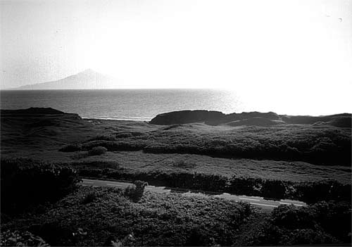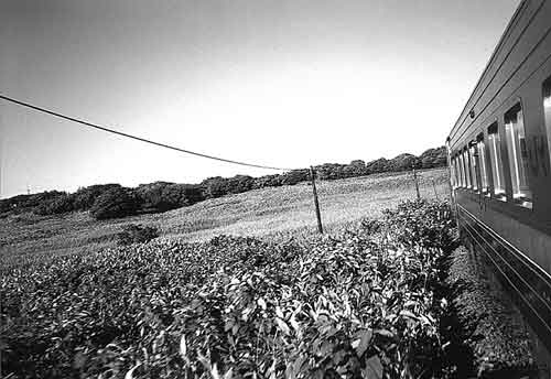 運転手さんが、景色の良いところで列車を止めてくれました。 落陽の日差しの中、うっすらと浮かんで見える利尻富士。 抜海付近にて。